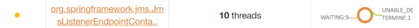 If I capture a thread dump, I can see that I have 10 consumer threads, 9 being waiting in the “dequeue” method of the ActiveMQ client proving they are idle ready to consume, and the last one being the stuck thread blocked on the HTTP connection: