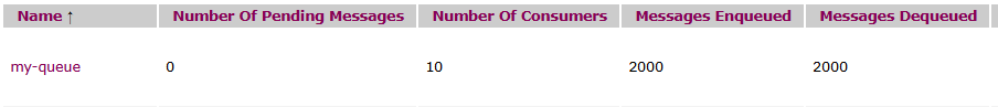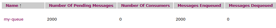 ActiveMQ provides a web administration interface and we can see there that I have 2000 messages in the queue before starting my consumer: